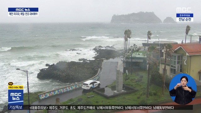 제주 전역에 태풍특보가 발효중인데요.기상청은 태풍이 오늘 오전 11시쯤 서귀포 동쪽 80km 해상까지 이동해 제주에 가장 근접할 것으로 보고 있는데요.