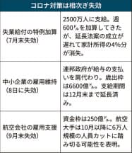 米政権・議会は計3兆ドルの財政出動に踏み切っている。このうち7月末には失業給付を週600ドル上乗せしてきた特例措置が失効した。中小企業(従業員500人以下)の給与支払いを連邦政府が肩代わりする雇用維持策も8日に失効する。9月末には40万人の従業員がいる航空会社向けの雇用支援策も失効する。