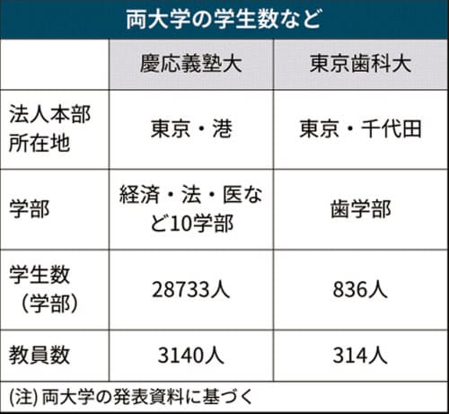 慶応大は現在10学部で構成。合併が実現すれば医療系4学部を含む11学部となる。経営幹部は「各学部の存在意義が明確で、重複がない。慶応と東京歯科の双方にメリットがある」と語った。