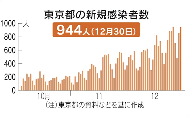 東京都は30日、新型コロナウイルスの感染者が新たに944人確認されたと発表した。1日あたりの新規感染者数としては26日の949人に次いで2番目に多かった。重症者は1人増えて85人となり、緊急事態宣言解除後の最多を更新した。