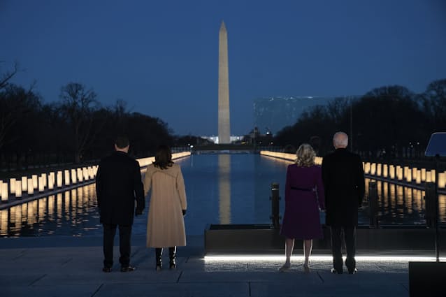 バイデン氏は19日夕(日本時間20日午前)、ジル夫人やカマラ・ハリス次期副大統領夫妻と共に、ワシントンのリンカーン記念堂を訪れた。国内のコロナ死者が40万人を超えるなか、400個の明かりで照らされた広場で「傷を癒やすためには(すべての犠牲者を)思い起こさなければいけない」と述べた。