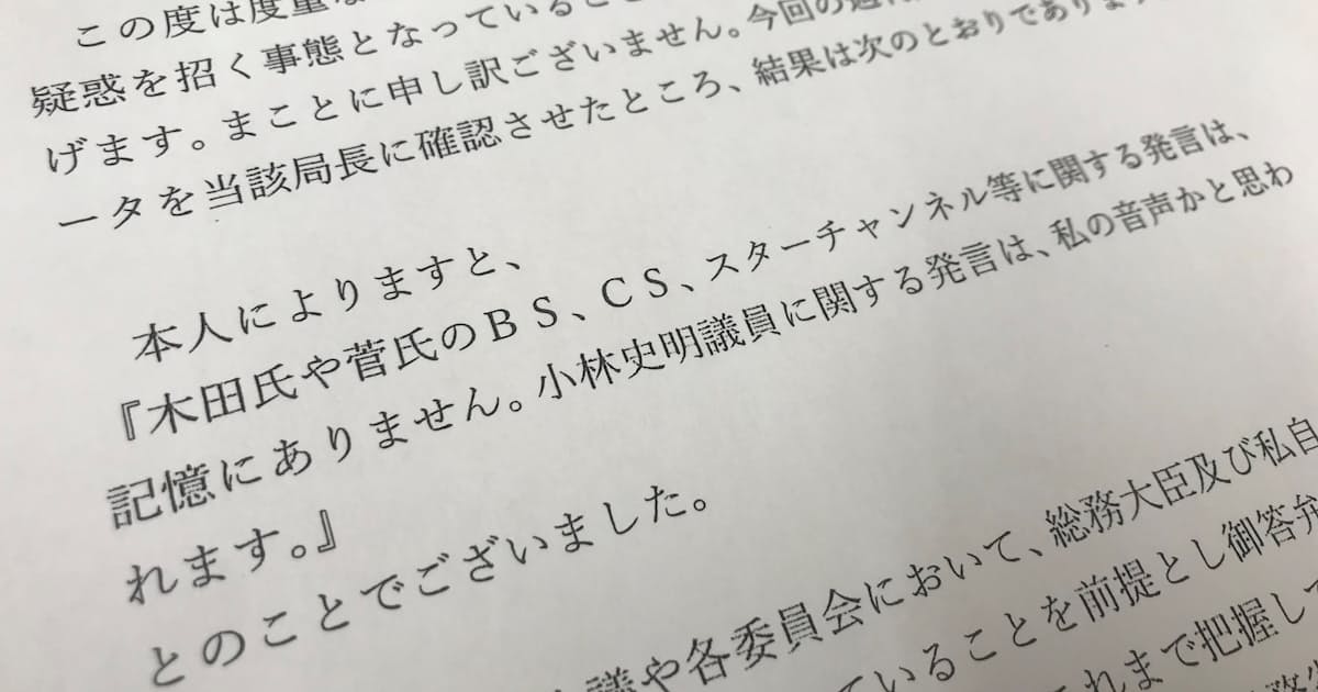 原邦彰官房長が提示した調査結果の文書によると、秋本氏は自民党の小林史明衆院議員に言及した発言について「私の音声かと思われる」と語った。衛星放送を話題にした部分に関しては...