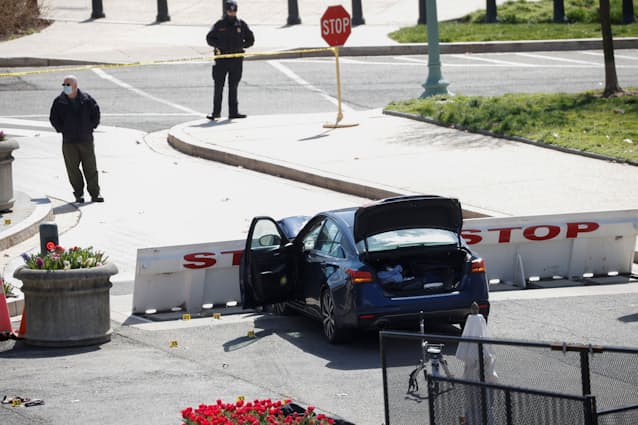 1月6日のトランプ前大統領の支持者による議事堂襲撃後に敷かれた厳重な警備態勢は、徐々に緩められていた。警官のうち1人は刃物で刺されたとの報道もある。現場には多くの警察車両が駆け付け、ヘリコプターが上空を飛ぶなど騒然とした。