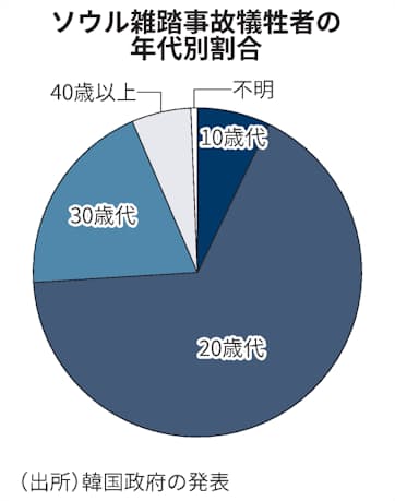【ソウル=甲原潤之介】ソウルの繁華街、梨泰院(イテウォン)で29日夜に発生した雑踏事故は若者と女性の犠牲者が目立った。韓国政府によると死亡した154人のうち10~20歳代が7割超、女性が6割超を占めた。大勢の参加者が集まる大規模イベントの安全対策が議論になりそうだ。