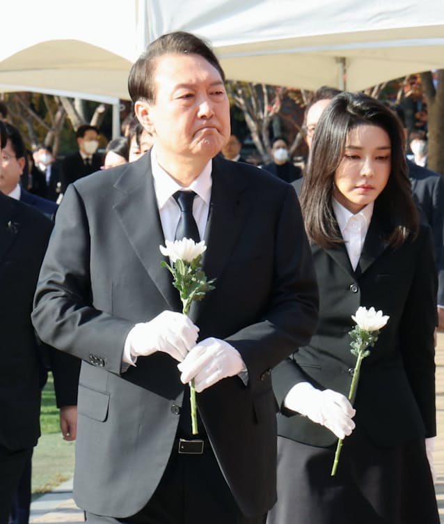 韓国の尹錫悦(ユン・ソンニョル)大統領は31日、ソウル市庁前の焼香所を訪れ、犠牲者を弔問した。夫人の金建希(キム・ゴンヒ)氏と並んで黙とうし、献花した。