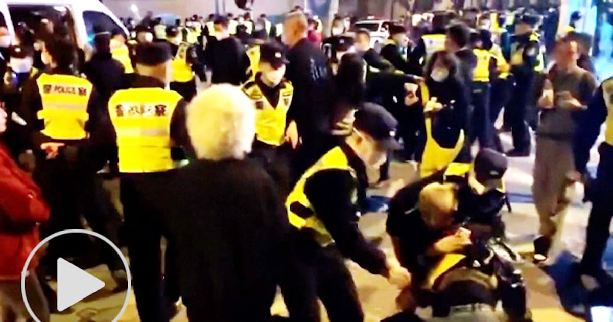 ツイッターに投稿された複数の動画によると、26日夜から27日未明にかけて、上海市中心部の「ウルムチ中路」で多くの住民らが集まり、「共産党、退陣」「習近平(シー・ジンピン)、退陣」などと大声で叫んだ。デモの参加者らが警察に捕まったもようだ。